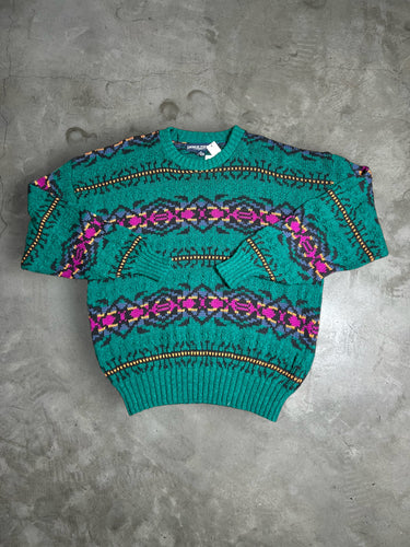 Vintage American Portrait Abstract Design Knit Sweater (XL) JKA282